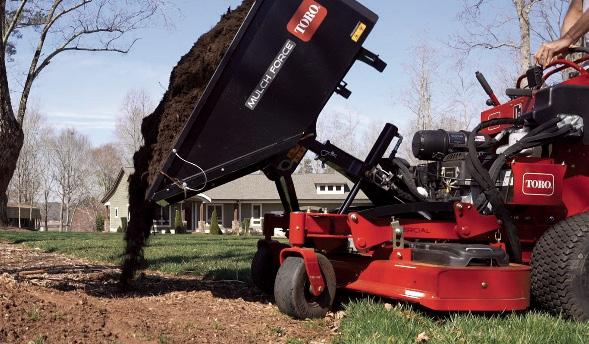 A variety of attachments and accessories such as Mulch Dump, Pro-Force blower, snow thrower, power broom, tine rake, dethatcher and BOSS snow blade all provide the ultimate in productivity.