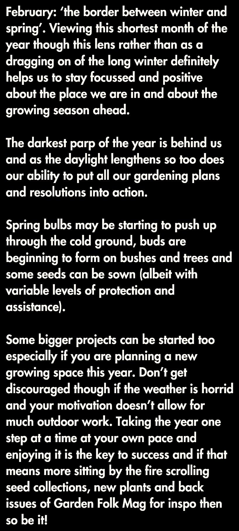 February is the month to really dip your toes in the water and get some gardening started. There are a few more seeds to sow, beds to prep and plenty of winter jobs to get done before spring properly arrives.