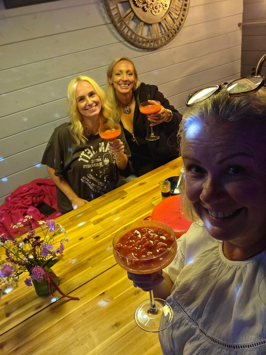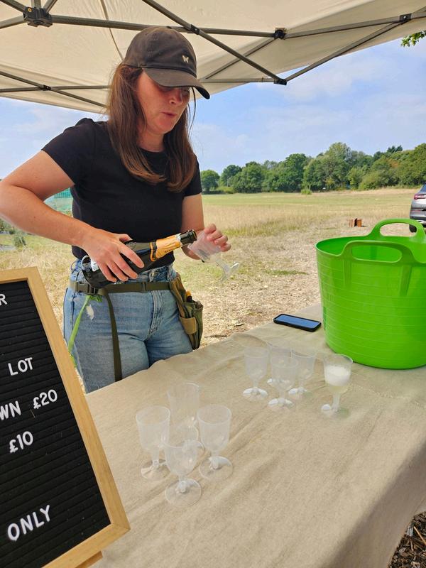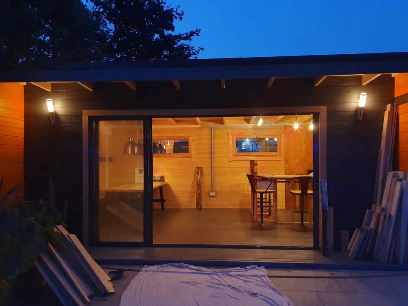 In July 2022, during a heatwave, the bar, or ‘The Dirty Hoe’ as it is now known, arrived A huge 6m x 4m log cabin that, piece by piece, had to be carried 80m from the front drive to where it was going to be built Every bit of wood needed to be painted on the outside prior to building and I was frantically painting as the landscapers were putting the cabin together There were times when I struggled to keep up, but miraculously I managed It took 4 days from start to finish to build ‘The Dirty Hoe’ and a week later we hosted 50 friends and family at our annual BBQ