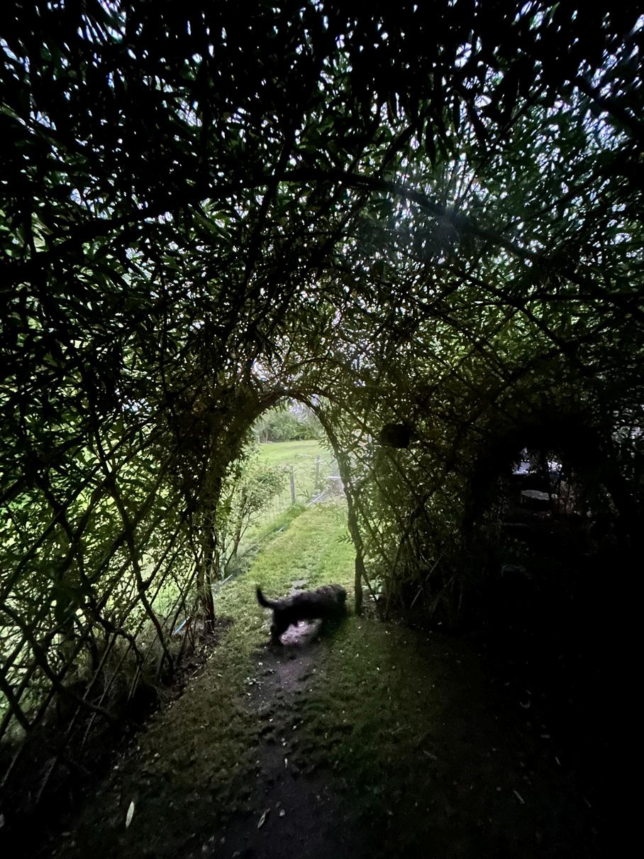 First to go in, at the end of the garden, was Mr P’s workshop which is almost the width of the garden In front of this we built a wooden gazebo, a huge raised bed and a large porcelain tiled courtyard. The raised bed was originally filled with cordalines, however in the great freeze of winter 2022 most of these died. This bed has now become where I grow many of my dahlias, a flower I once famously said I would never grow as there is only room for one diva in my garden and that’s me. There’s also a smaller bed which was originally intended to be a small wildlife pond, this didn’t work out and it is now filled with cordyline and black grass.