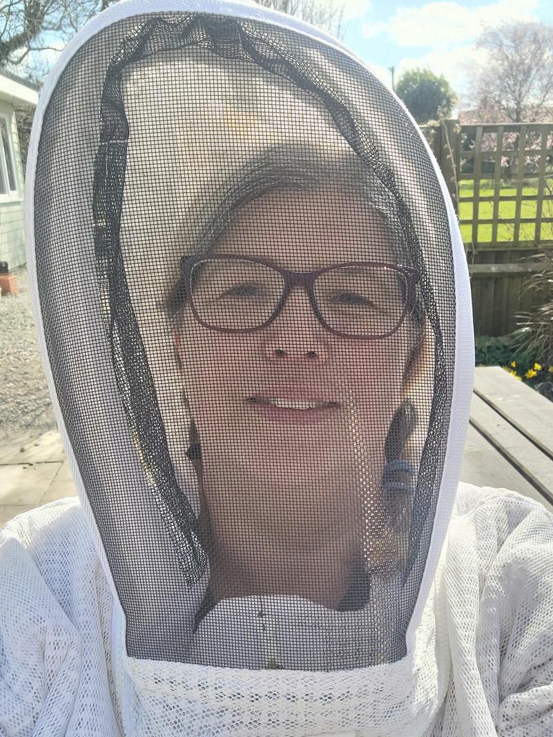 In my eagerness and naivety, I bought three hives from someone giving up beekeeping. I hadn’t looked in the hives, it turned out they were not in the best condition, and their temperament was not ideal for a beginner beekeeper. Luckily I enlisted the help of my husband, Ray – he had previously declared his dislike of ‘buzzy things’ but I think he felt sorry for me so braved a beekeeping suit and got involved With his help and the guidance of a local Mentor we managed to get the bees healthy and happy