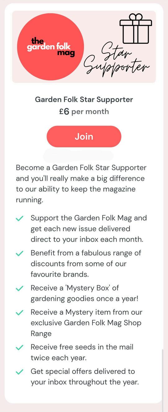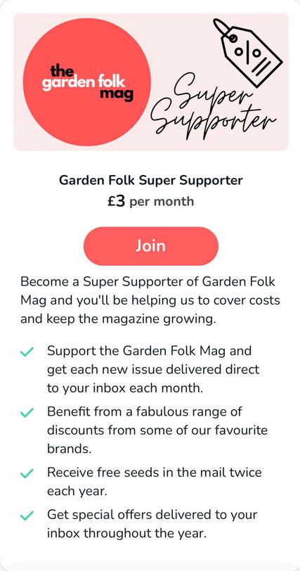 We appreciate all the support given to the magazine by all the Garden Folkour readers, writers, industry supporters and anyone else who cheers us on Running the magazine each month does incur financial costs though, so if you are able to contribute, either with a one off payment or by becoming a member, it would really help to keep the magazine going... and growing.