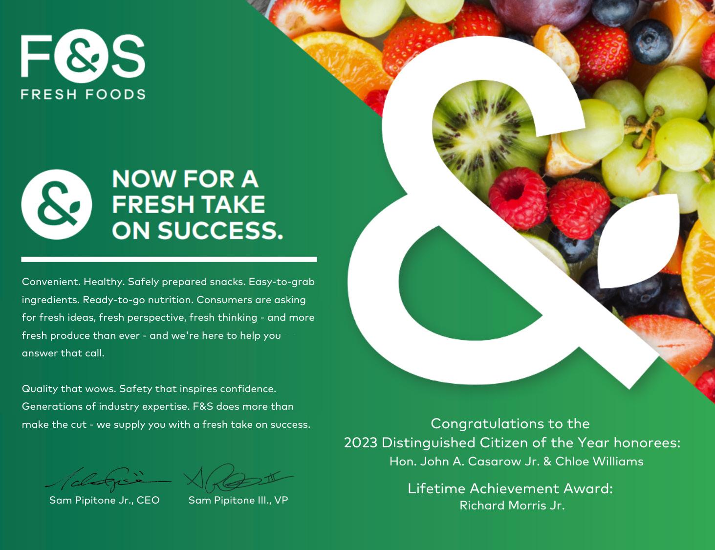 PSEG Nuclear Distinguished Citizens of the Year Hon. John A. Casarow Jr. Chloe Williams Lifetime Achievement Award Winner Richard Morris Jr. congratulates