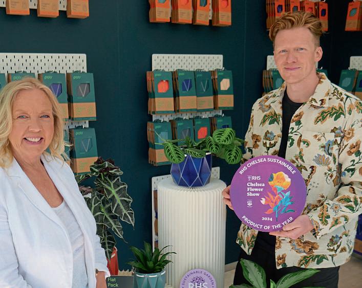 Deborah Meaden and Andrew Flynn with POTR,the flat pack, self watering pot that ticks all the right sustainable boxes