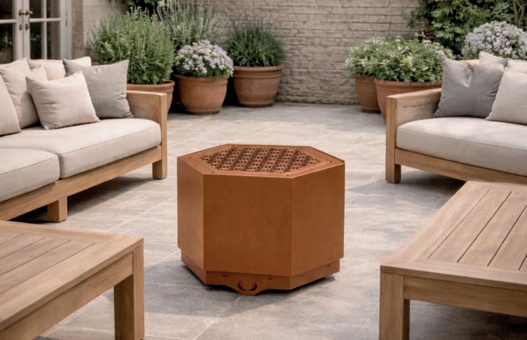 TheHex Smokeless FirePithas been carefully engineered to createa cleaner,moreenjoyable outdoor fire experience.Airisdrawninfrom beneaththe fire pit,creating anatural airflow systemthatfeedsthe fire whilekeeping smokewithin thechamber.Thisdesignallows flames to risebeautifullyfromthe topwhile significantly reducing thesmokethat typically drifts aroundtraditional fire pits.