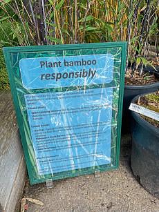 Labellingis keyandcustomersneedto knowiftheyare buying a‘runningbamboo’ which spreadthroughundergroundrhizomes andcanbecomeinvasive or a‘clumping bamboo.’ Thelatterarelessaggressive