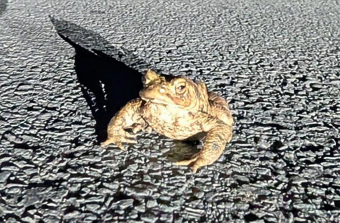 Springhasdefinitelysprunghere onthenorthern edgeofthe Peak District.Thedaffodilsareout,the blackthornisinfullbloom,andthecherry tree flowerbudsarelookingliketheymight burstopenanydaynow.I’veheardmyfirst curlew ofthe year,andI’ve justseenmy first toadmakingits waytothestream(photo of said toadbelow!)