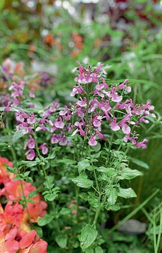Aromatic foliage anddistinctiveeyecatching flowers arethe hallmark of Salvia ‘StrawberryMelba’. Pale pinkwithcontrasting deep purple/pink throatswhich blush intothe main petals they areproducedfromMay to October