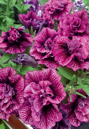 heart-shaped redpetalsare stiped with yellow and it can be growncool. Other highlights are Petunia Tumbeliana Nicola and Juliana and the striking SweetSunshine Blue Skywith white petals speckled with navyblotches being in demand.