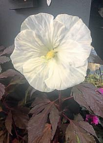 ability to cope with the challenges of future gardeningand climatechange. Intriguing new introductions included purple leaved Hibiscus moscheutos Carousel Ghost with bright, whiteflowers. Adeciduous perennial it looks, from afar,likeananemone. Aheavily scented cyclamen being marketed as Ambianceand Rosa ‘ScentifallLemon’ were twoofhis favourites, the rose being one of the last