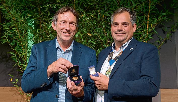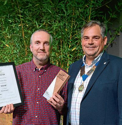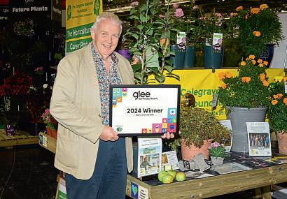 Aslightly overwhelmedMikeBurks, Managing Director of TheGardens Group,has been presentedwith the HTA’s 2024 Pearson Memorial Medal. Given annually foroutstanding contributions to the garden industry, it recognises Mike’senvironmentalwork and leadership.Presenting the award, HTAPresident Will Armintage says: “Not only is MikepartofThe Gardens Group,hecontinues to be an articulatespokesperson forindustryissues, and his involvement in the ongoing conversation around the futureofpeat servesasa keyexample.Hehas the ability to consider and communicateboth sides of the debatethoughtfully.During the Covidpandemic,Mikeworked with the HTAinarelentless drivetoreopen garden centres, arguably saving the industry.”