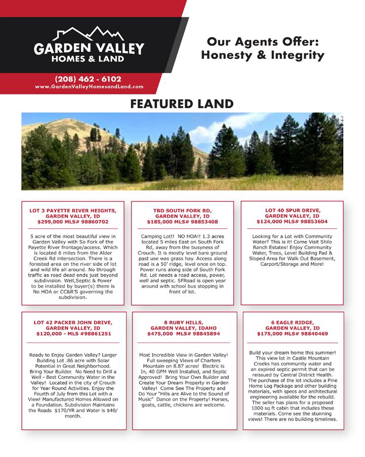 84 -- Boise County Guide - May-June 2023 Issue Find your dream lot in Garden Valley STARTING AT $68,000 mountainpropertiesgroup.com 2 0 8 - 4 2 8 - 4 5 3 5 mpgidaho@gmail.com