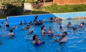 Kirkham Hot Springs, located near the Boise National Forest campground of the same name, features somewhat shallow rock pools (unimproved) with sand/rock bottoms next to the river. The multiple hot waterfalls are quite a sight! Both the pools and hot waterfalls can be seen from a large pullout off highway 21 on the west side of the campground. Spring soaking can help one avoid the full-house use of the summer and winter seasons.