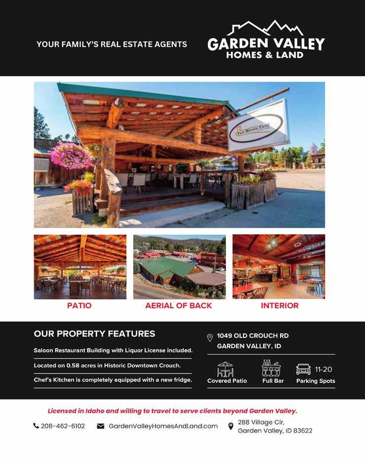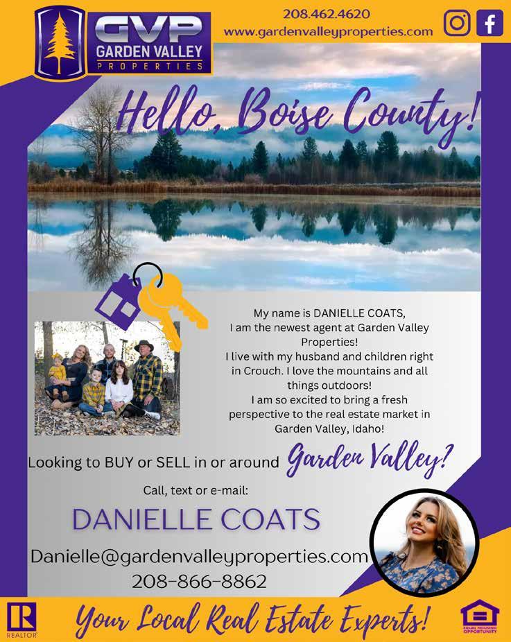 12 -- Boise County Guide - May-June 2024 Issue AUDETTE MOUNTAIN PROPERTIES L.P. 208-331-7929 www.mtn-property.com Floyd@mtn-property.com