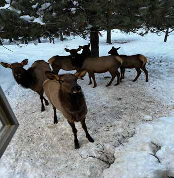 Big game gather in Wildlife Canyon during the winter because the area is lower in elevation than the surround ing mountains and the south-facing slopes have much less snow. They can feed on sagebrush, bitterbrush, and chokecherry. These plants have little nutritional value when compared to the lush grasses and forbs they eat the rest of the year. Because elk and deer eat this lownutrition food in the winter, they are primarily living off of stored fat reserves that were built up the previous summer and fall.