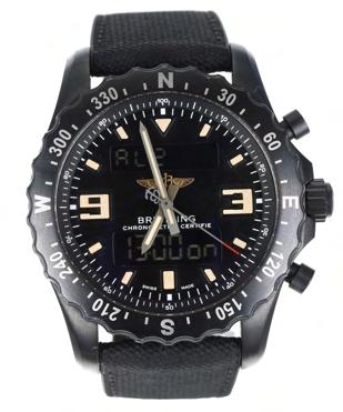 Breitling Chronospace Military Special Edition DLC-coated stainless steel gentleman's wristwatch, reference no. M78366, serial no. 1565xxx, black analogue/digital dial, rotating 'compass' bezel, Breitling black rubber strap with signed folding clasp, 47mm ** with Breitling box