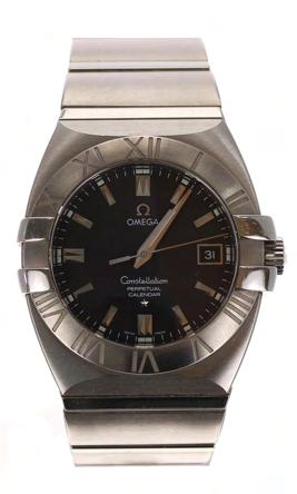 Omega Constellation Perpetual Calendar 'Double Eagle' stainless steel gentleman's wristwatch, reference no. 15135100, serial no. 5874xxxx, circa 2008, black dial with roman numeral bezel, stainless steel Omega bracelet with butterfly clasp, quartz, 40mm