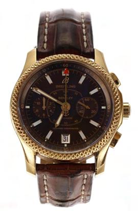 Rare Breitling for Bentley Mark VI Special Edition Chronograph Chronometer automatic 18ct rose gold gentleman's wristwatch, reference no. H2636212, serial no. 2122xxx, circa 2007, special edition no. 4xx of 500 pieces produced, brown dial, Breitling brown leather strap with signed 18ct buckle. 41mm bezel
