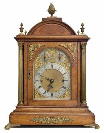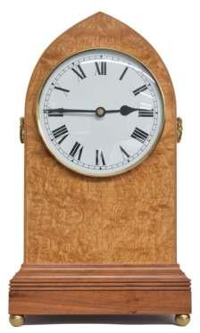 Electric BulleClock, the 4.25" silvered dial within a rounded arched inlaid walnut case, 9.75" high