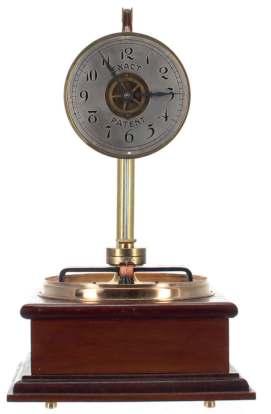 Frank Holden 'Exact Patent' electromagnetic mantel clock, the 3.5" silvered chapter ring enclosing a brass centre with toothed wheel, upon a brass cylindrical support, under a glass dome and upon a square stepped walnut base, 12" high overall £600£800