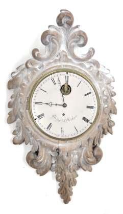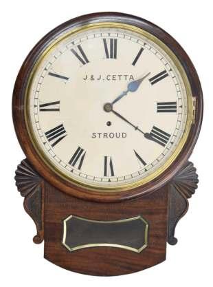 Mahogany single fusee 12" wall dial clock signed W. Richards, Tavistock, within a turned surround (pendulum)