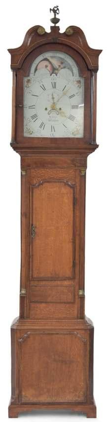Oak stick barometer/thermometer, the silvered angled scale signed Davis, Leeds, over a flat trunk and circular stepped turned cistern cover (thermometer missing); also an oak aneroid barometer, the 8" white dial signed W. Gregory & Co. 51, Strand, London, within a carved oak case (2) £60£100