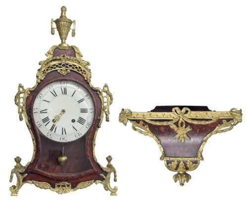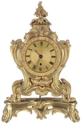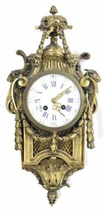 Small French two train cartel wall clock, the movement with outside countwheel striking on a bell and stamped H & F, Paris no. 3456, the 4.5" white dial within a foliate cast case, 14.5" high overall £120£180