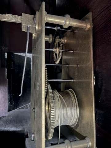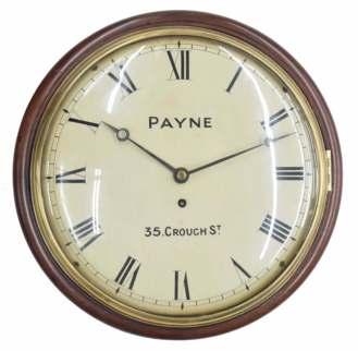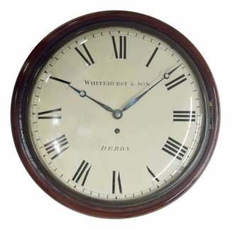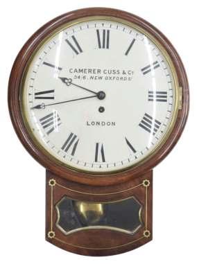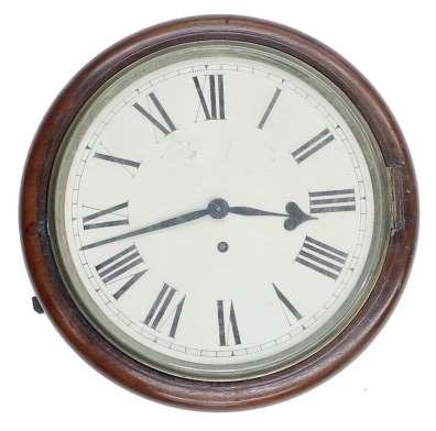 Mahogany single fusee 12" wall dial clock, within a turned surround (pendulum)