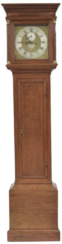 Oak single fusee 12" wall dial clock, within a turned surround (pendulum)