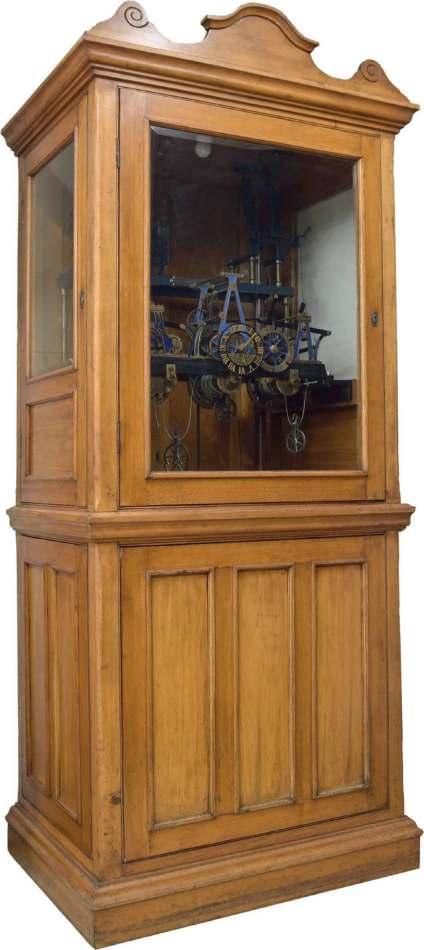 Magneta electric master clock, the 8" silvered dial inscribed Patent no. 19701, U.S.A. July 5th 1900, July 24th 1901, the movement back plate stamped no. 2033, within a panelled oak glazed case fitted with a rectangular brass plaque inscribed 'Societe Anonyme, Magneta, Horloges, Electriques sans Batterie ni contacts, Zurich (Suisse), Agence á Paris 110 rue Reaumur', surmounted by a rounded arched cornice, 87" high (wooden rod pendulum and two weights)