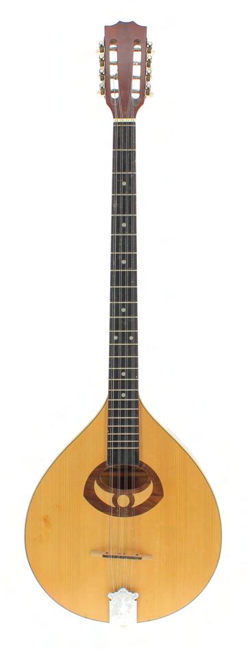 Jerry Webb contemporary mandolin, bearing the maker's brass plaque fixed to the inner back and inscribed Webb. Instrument Co. Tunbridge Wells Kent...Luthier Jerry Webb, also inked with the serial number FBMN.001., with stylised foliate mother of pearl inlay to the fretboard and inlaid with the maker's initials to the head, hard case £150-250