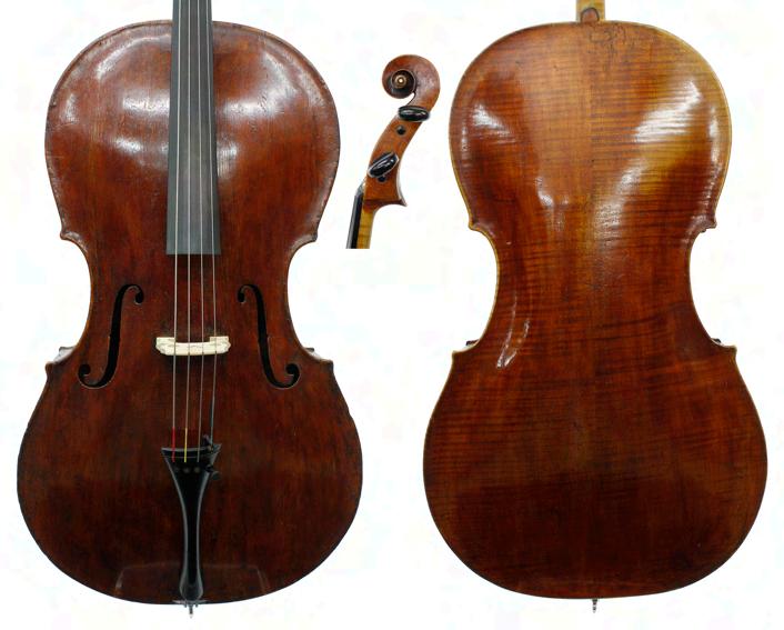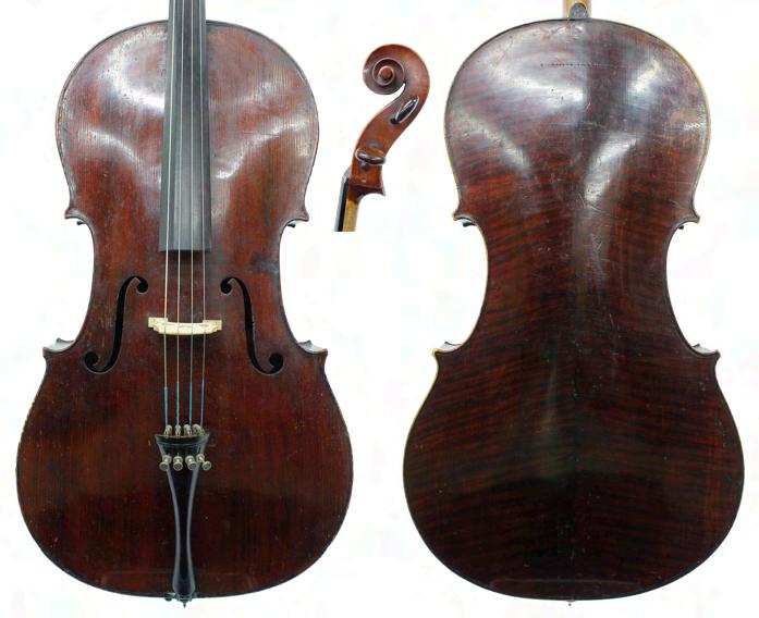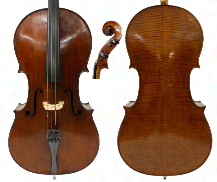 *This violoncello is sold with a silver and nickel mounted violoncello bow faintly stamped Weichold, Dresden; also with another silver and nickel mounted violoncello bow, unstamped. The instrument is accompanied with an appraisal for the purpose of probate from Bromptons Auctioneers