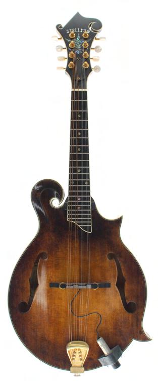 Rare Stelling mandolin, bearing the maker's label inscribed Mandolin LS-5, ser. no. L007, manufacture date 3-4-99, with abalone mother of pearl inlaid maker's name and foliage to the shaped head, hard case; also with a spare Stelling hard case (2)