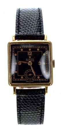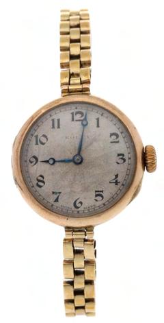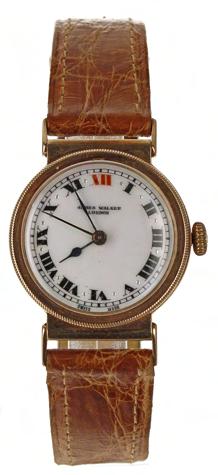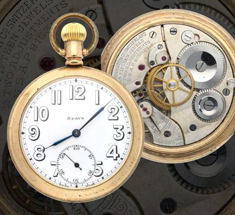 Waltman - 14ct cylinder engraved fob watch, gilt frosted bar movement with 'Waltman' trademark, metal hinged cuvette, gilt dial with Roman numerals and engraved centre, 30.0gm, 34mm