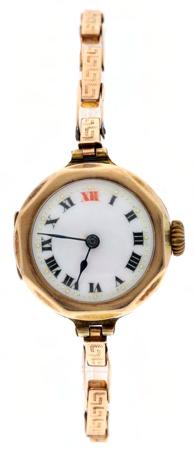 14ct cylinder engraved fob watch for repair, gilt Roman numeral dial, 26.9gm, 36mm