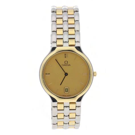 Omega silver (0.800) and gold plated lever pocket watch, serial no. 8600xxx, circa 1930s, signed gilt frosted 15 jewel movement, signed gilded dial with Arabic numerals, outer minute track and a sunken subsidiary seconds dial, gold 'Breguet' type moon hands, Omega inscribed cuvette within a clean engine turned case, case no. 9506xxx, 49mm