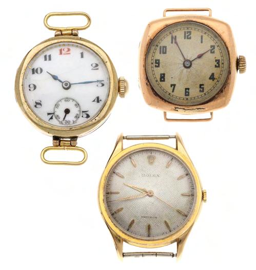Northern Goldsmiths Co. Newcastle lever pocket watch movement with 9ct stem and bow, 15 jewel timed 3 positions for all climates, with compensated balance and regulator, dust cover, signed Arabic numeral dial inscribed 'Admiralty', blued steel hands, 9ct bow and stem, 45mm; together with a West End Watch Co. 'Queen' silver (0.900) engine turned cylinder fob watch for repair, 34mm and a nickel cased lever pocket watch, 47mm (lacking glass and hands) (3)