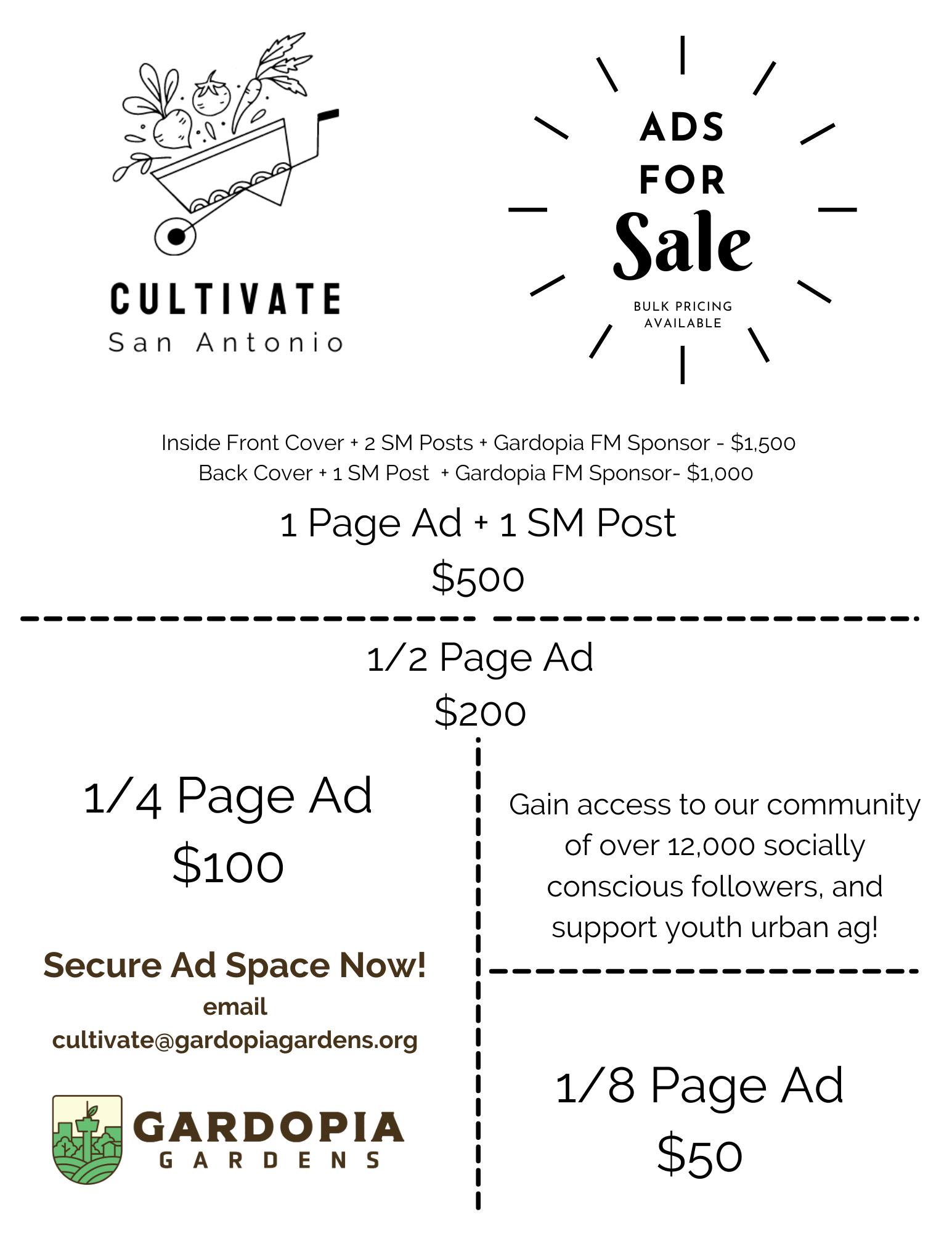 year round. There is no data for the San Antonio region on how many home gardeners or farmers there are in the region, but it’s safe to say quite a few folks are avid growers, and produce a tomato or two! During the pandemic there was a wave in home gardeners due to the shutdown and people spending more time in their residences. Some local companies popped up or expanded, such as The Landscape Cooperative, Two Hoes Gardening, Uprooted Gardens, South Eden Food Forest, Grow Food SA, and more. The rise of these companies starts to validate the industry, and niche landscaping that can provide functional and beautification that creates food security at the individual and familial level.