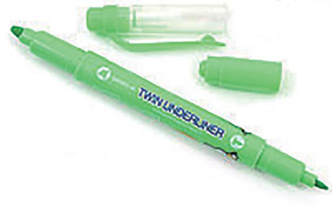 ▶미피트윈언더라이너양면하이라이터 - 옐로우그린