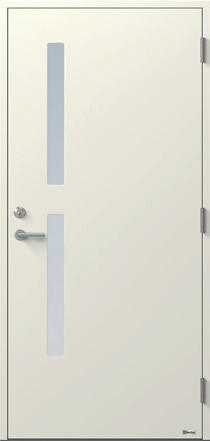 Sikkerhet EN 1627: Ønsker du en dør med ekstra sikkerhet så tilbyr vi tilvalget Sikkerhet EN 1627 med RC2 og RC2N. En sikkerhetsdør er utstyrt med ekstra sterk konstruksjon på hengsler og sluttstykke. For våre dører uten glass tilbyr vi RC2 som tilvalg, i dører med glass kan du velge mellom RC2 og RC2N. Forskjellen er at med RC2 er hele døren klassifisert, selv glasset er sikkerhetsglass. Med RC2N betyr dette at døren kun er klassifisert mot innbrudd mellom karm og dørblad.