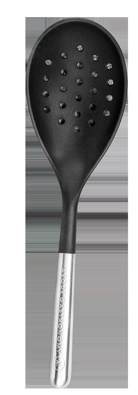 Designed to make cooking feel easy the utensil range complements the knife range using the same high quality materials. Heat resistant, non-stick and dishwasher safe they are reinforced with high carbon steel for longevity. The range covers all your cooking needs, including a turner, a slotted turner, a spatula, a ladle, a strainer and a cooking spoon. So whether you are pouring a soup, turning your fish, or stirring your sauces these utensils will help give that professional finish to each and every dish.