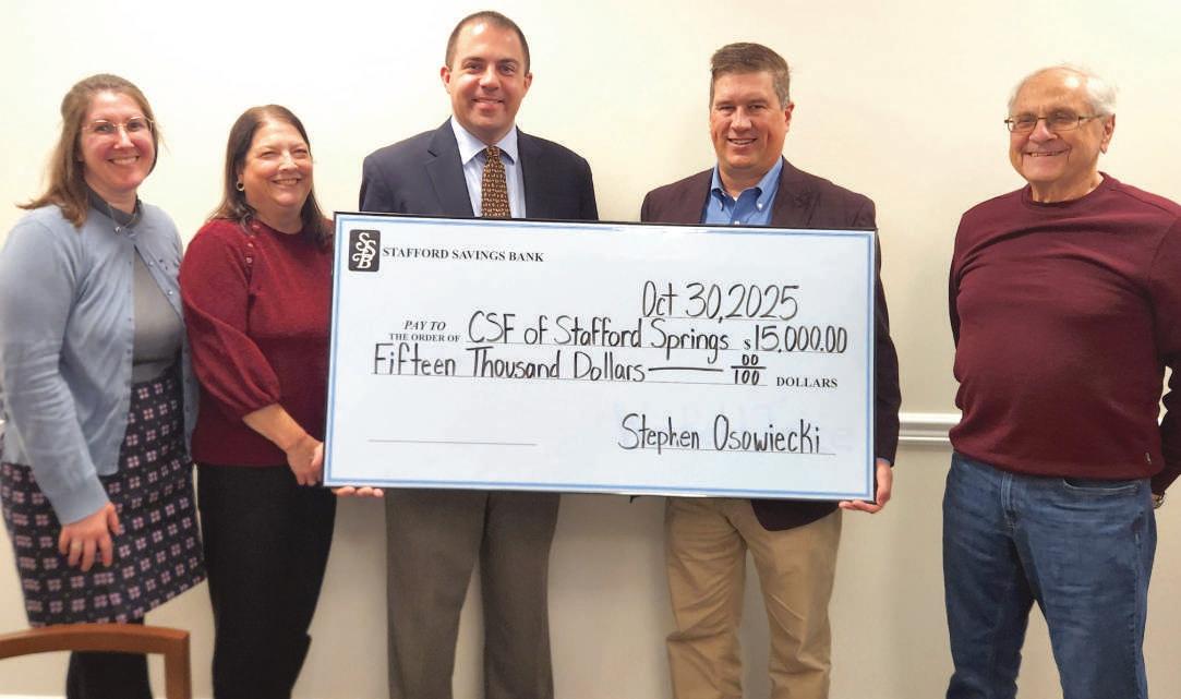 The Citizens Scholarship Foundation of Stafford Springs was presented with a very generous $15,000 contribution by Stafford Savings Bank. SSB has been making this donation annually for many years, helping graduating seniors from Stafford and Union achieve their educational goals after high school. Pictured (L-R) are CSF Secretary Rachel Jezek, CSF Treasurer Krista Hicks, CSF President Michael Introvigne, Stafford Savings Bank President Stephen Osowiecki, and CSF Investment Chair Gerry LaMorte.