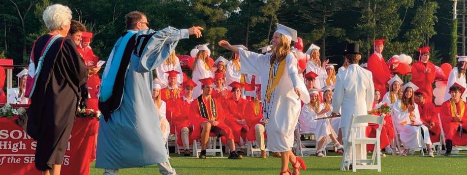 Somers High School graduates celebrate following the conclusion of the ceremony at the school’s athletic fields.