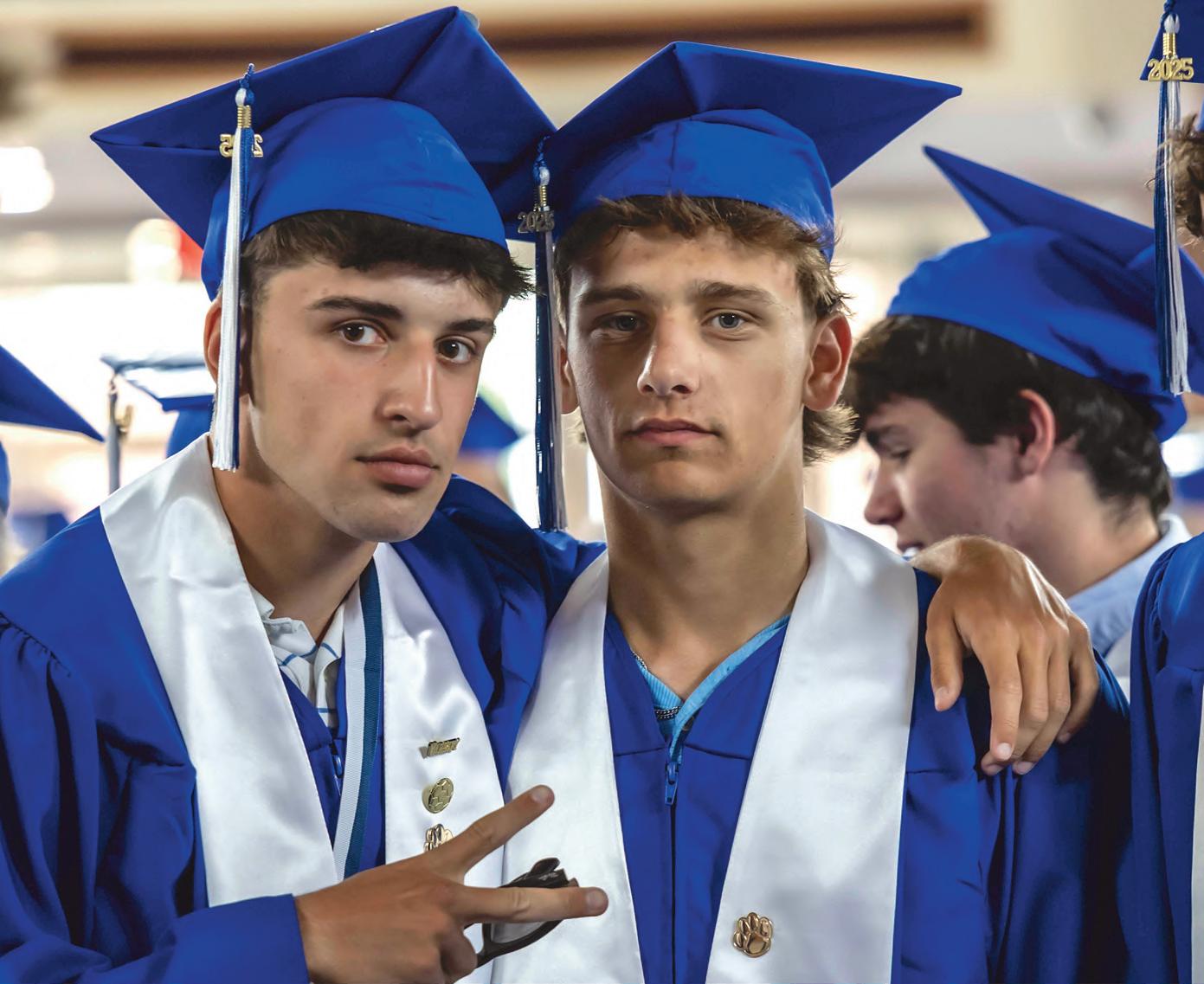Suffield High School Class of 2025 members Josh Zenack (left) and Colin Faber moments before marching into the graduation ceremony June 14 and moving their tassels from right to left. More photos, page 41. Photo courtesy of Rob Faber Photography Ready to