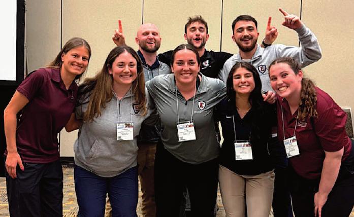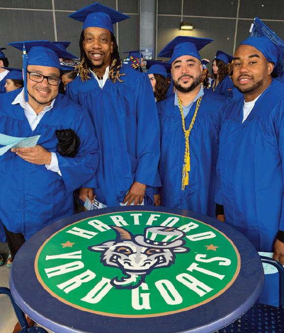 Heavy rain caused changes to the program at Dunkin’ Park in Hartford, but that didn’t dampen the spirits of CT State Asnuntuck’s class of 2025. Pictured, from left are students Jose Cubiz, Will Long, Lenny Trujillo and John Lomax. Another photo page 26,