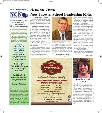 New faces have been popping up in schools all over North Central Connecticut, as the new year came with leadership changes in several area institutions. Asnuntuck Community College Michael Stefanowicz is the new dean of academics at Asnuntuck Community College in Enfield. Formerly the division director for liberal arts at Manchester Community College, Stefanowicz said he has lived in Enfield for 20 years and had previously worked at ACC as the college’s tech prep coordinator and assistant coordinator for vocational technical education. “I’ve always had a place in my heart for Asnuntuck,” he said, adding that it’s good to be back. “There’s certainly a lot of focus on community colleges,” he said, pointing to President Barack Obama’s initiative to make community college educations accessible to all students and free of charge with certain requirements. Stafanowicz said with the 10-year