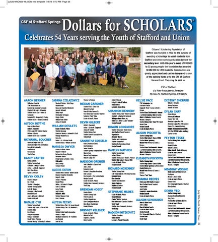 ALYSON BLYTHE AL LYSON BL LYTHE YTHE Reno & Lillian Tonoli Attilio R. FFrrassinelli CSEA Local 2001 Stafford Chapter Nicholas H. Booth Stafford Rotary Club - Earl Witt