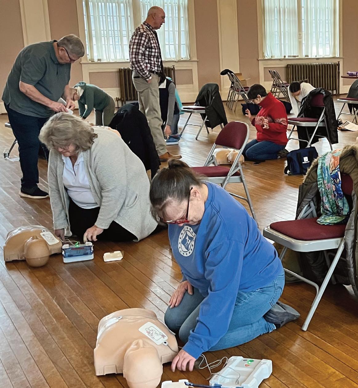Town staff and volunteers complete an AED and first aid course conducted by Stafford Ambulance EMS Officer, Cathy Cannon. Photo courtesy First Selectman’s Office Other state, fed funding requests pending