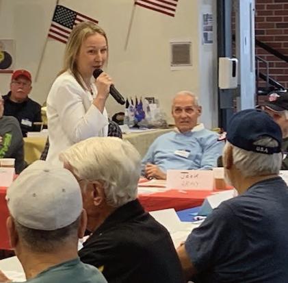 First Selectman Bill Morrison greets members of Cub Scout Pack 50 after they led the Pledge of Alligance at a meeting.