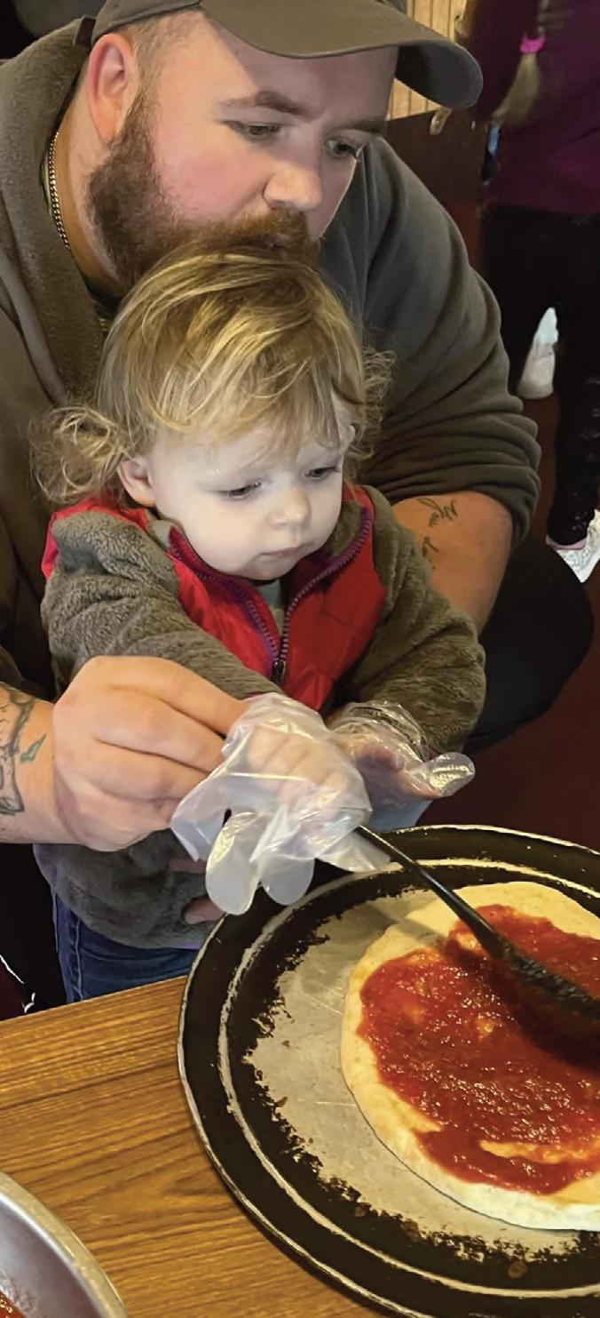 National Pizza Day was Feb. 9 and Danny’s Pizza hosted a children’s pizza making event for Enfield Family Resource Center families. Left, Brooke and Cole Dahlquist, Erin Grimes, lead parent educator for The Enfield Family Resource Center with Gianina Martucci, Lilth MacPherson, Brynn and Barrett Carrigan. Right, Christopher MacPherson with daughter Lilth MacPherson.The Enfiield Family Resource Center offers family support services promoting parenting skills and family involvement with the schools, striving to help children succeed academically, socially and emotionally.